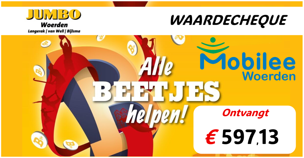 Spaar mee voor Mobilee met de B’tjes van de Woerdense Jumbo supermarkten jumbo Langerak, jumbo Stefbijlsma en jumbo Van Well. Doe komende tijd boodschappen bij één van de Jumbo’s in Woerden en help Mobilee met extra centjes!